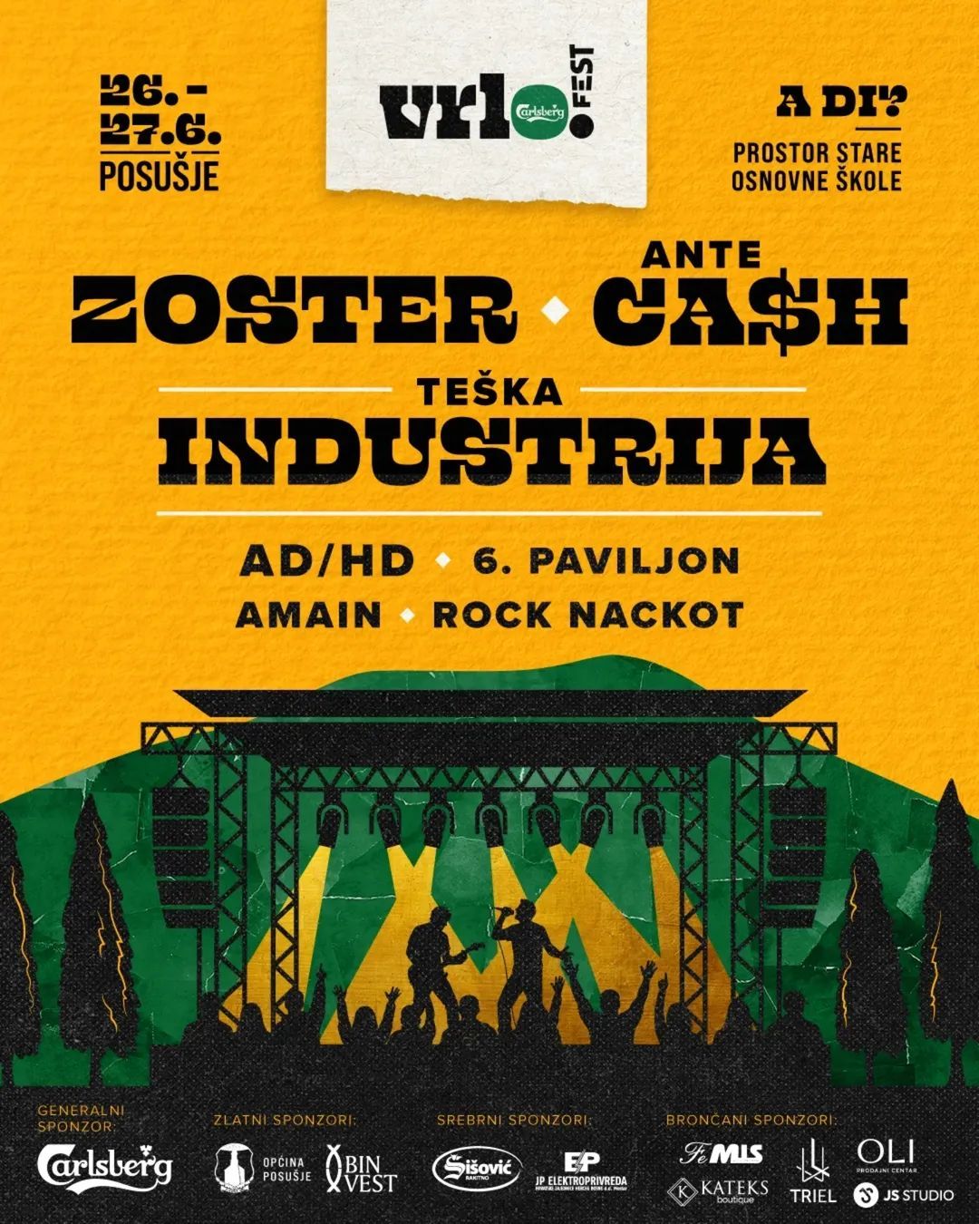 ”Riječ vrlo je lokalizam specifičan za Posušje, gdje se često koristi kao superlativ pridjeva dobar. Umjesto najbolji u Posušju često kažemo vrlo”, objašnjavaju organizatori ime ovoga Festivala koji će se svoje prvo izdanje imati u petak i subotu, 26. i 27. lipnja 2026. godine, a očekujući veliki broj gostiju na ovom festivalu nadaju se kako vrlo neće više biti samo lokalizam vezan za Posušje, nego da će se za njega čuti i puno dalje. Jamče to i glazbena imena koja su organizatori pozvali na prvo izdanje ”Vrlo Carlsberg Festa”, kao pripreme koje za ovaj Festival traju već godinu dana. Na ”Vrlo Carlsberg Festu” nastupit će Zoster, Teška industrija, Ante Cash, AD/HD, Šesti paviljon, Amain, Rock nackot… Tako će uz poznata glazbena imena priliku predstaviti se brojnoj publici dobiti i mladi lokalni izvođači sa svojim bendovima.